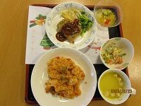 お食事もクリスマスメニューになっていて、チキンライスやミートローフでした。