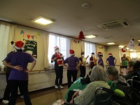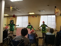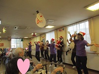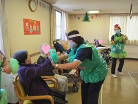 クリスマスツリーのような衣装を着たスタッフと一緒に大きな声でクリスマスソングを歌い楽しみました。