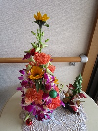 カーネーションやひまわりなどで華やかなお花になって、入居者様も「綺麗だね~✨」と喜ばれていました。