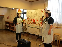 職員と一緒に大きな声で歌っていて、とても楽しそうでした。