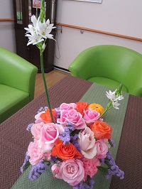 お花をみた入居者様は「今回も可愛いね」と喜ばれていました。