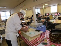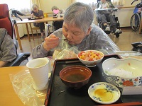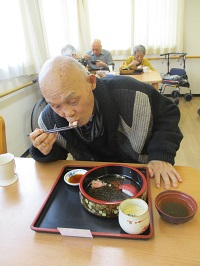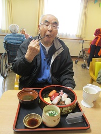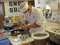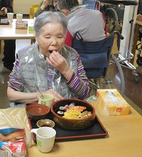 握り寿司とお吸い物と茶碗蒸しのメニューですが、お寿司が大きい方には一貫切って召し上がって頂いたり、お粥の方にはネギトロ丼にしてご提供しております。