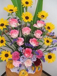 大きい方はひまわりやバラやカーネーションなど可愛らしい生け花になっています。