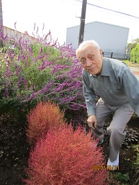 コキアが赤く色づき始めていて、きれいです。
