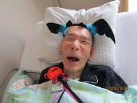 一時停電のため真っ暗の中でしたが、玄関に近い明るいところで職員と一緒にバレーをしました。