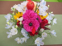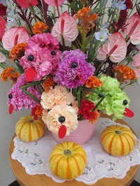 カーネーションで作られた犬がたくさんいる生け花を見た方は「かわいいねぇ~♥」と喜ばれていました!