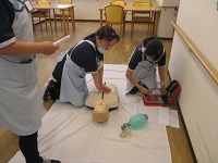 本日、施設内厨房より火災が発生したとの想定で避難訓練を行いました。