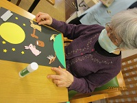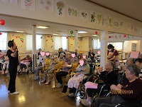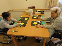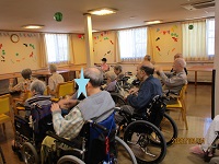 職員の真似をして真剣にストレッチ体操に取り組んでいました。