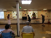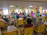 入居者様はマラカスやタンバリンを鳴らし、楽しまれていました。