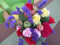 小さい生け花にはリンゴを使って生けて頂きました。