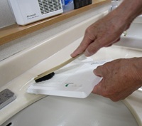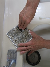 ③電極プレートは洗剤を使って両面をペーパーヤスリで水洗いします