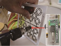 ④電極プレートの円の中は電動ドライバーに砥石を装着して汚れを取り除きます