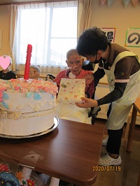 沢山の入居者様・スタッフにお祝いをされて嬉しそうでした。