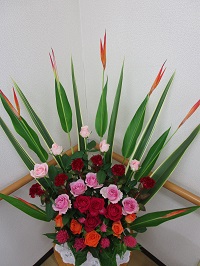 今回は薔薇がメインで赤やピンク系のお花でまとめられていて、とても可愛い生け花になりました。