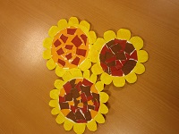 食堂に飾るひまわりの掲示物を作成しました。