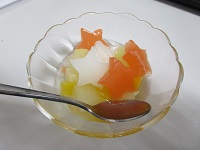 昨日の昼食は七夕そうめんやお星さまがたくさんのっている杏仁フルーツでした。