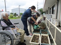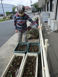 種まきから数日しかたっていないのに2~3cm芽が出ていて、入居者様も「もう芽が出ているのね!」とびっくりされていました。