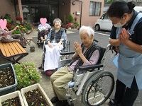 沢山の入居者様、スタッフにお祝いをされて嬉しそうでした。
