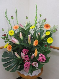 今回はユリがメインで満開に咲いている今、応接室がとてもいい匂いになっています。