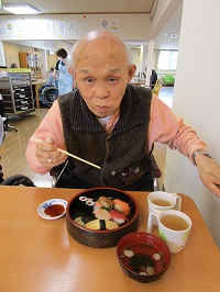 皆様とても楽しみにされていて、お寿司などをおいしそうに召し上がっていました。