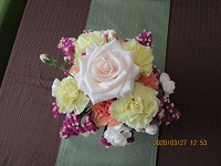 白いバラがメインのフラワーアレンジメントです。