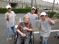 曲がかかると車いすをだして~と入居者様も手振り身振りで踊り出してくれました。