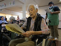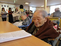 歌詞カードを作成して皆様とご一緒に懐かしい曲を合唱して、楽しい時間を過ごさせて頂きました。
