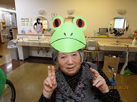 職員がカエルになりきり、一緒に歌をうたいました。