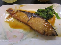 本日のメニューは、赤飯・味噌汁・ぶりの照り焼き・切り干し酢の物・フルーツ です