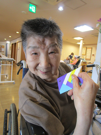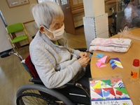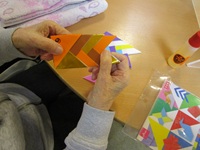 三角形に折った折り紙同紙を隙間にはめていくだけなので、とても簡単でした!