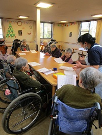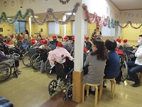 クリスマス会の準備。皆さんで歌の練習です。