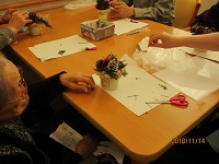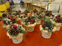 松ぼっくりをクリスマスツリーに見立て思い思いの作品が出来上がりました。