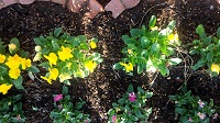 また春まで楽しませてくれるパンジーが紫色の濃淡の花が咲いています。