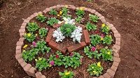 ひまわりは綺麗に刈り松葉ボタンやパンジーなど新しく植えております。