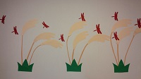 施設2階の食堂に赤とんぼとススキの展示が沢山ございます。