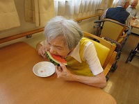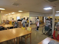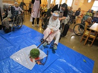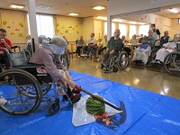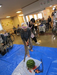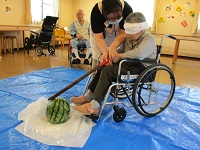予定は外でのスイカ割りでしたが気温30℃とのことで屋内で開催致しました。