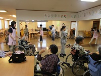 町会の方がたも浴衣姿で練習にお付き合いくださり