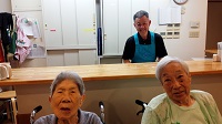 ラジオ体操の後ラウンジでしっかり水分補給をして頂きました。