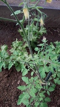 大きくはなっているのですがまだまだ緑色のトマトです。