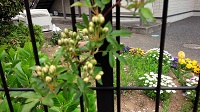 垣根のモッコウバラも蕾が膨らみ今にも黄色の可愛い花が咲きそうです。