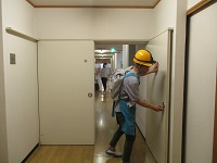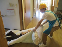 消火活動をし避難誘導、動けない方の対応でシーツでの移動を試みました。