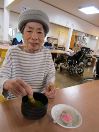 お茶を点てて、和菓子と一緒に召し上がって頂きました