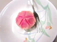 和菓子は近所の和菓子屋「隆月」さんで、桜の花びらをモチーフにした練り切りです🌸