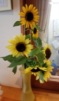 お庭に咲いていたひまわりを切り花にして施設のなかで楽しんでいます。