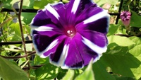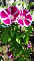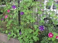 施設の入り口のフェンスにいろあざやかな朝顔がたくさん