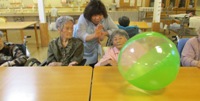 暑い日は涼しい室内でボール投げに興じましたが・・・