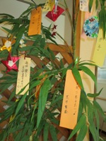 7月7日の七夕まで笹に願ごとを書いて飾り付けを行っております。