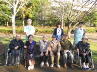 秋晴れの午後みなさんで近くの公園で森林浴をし