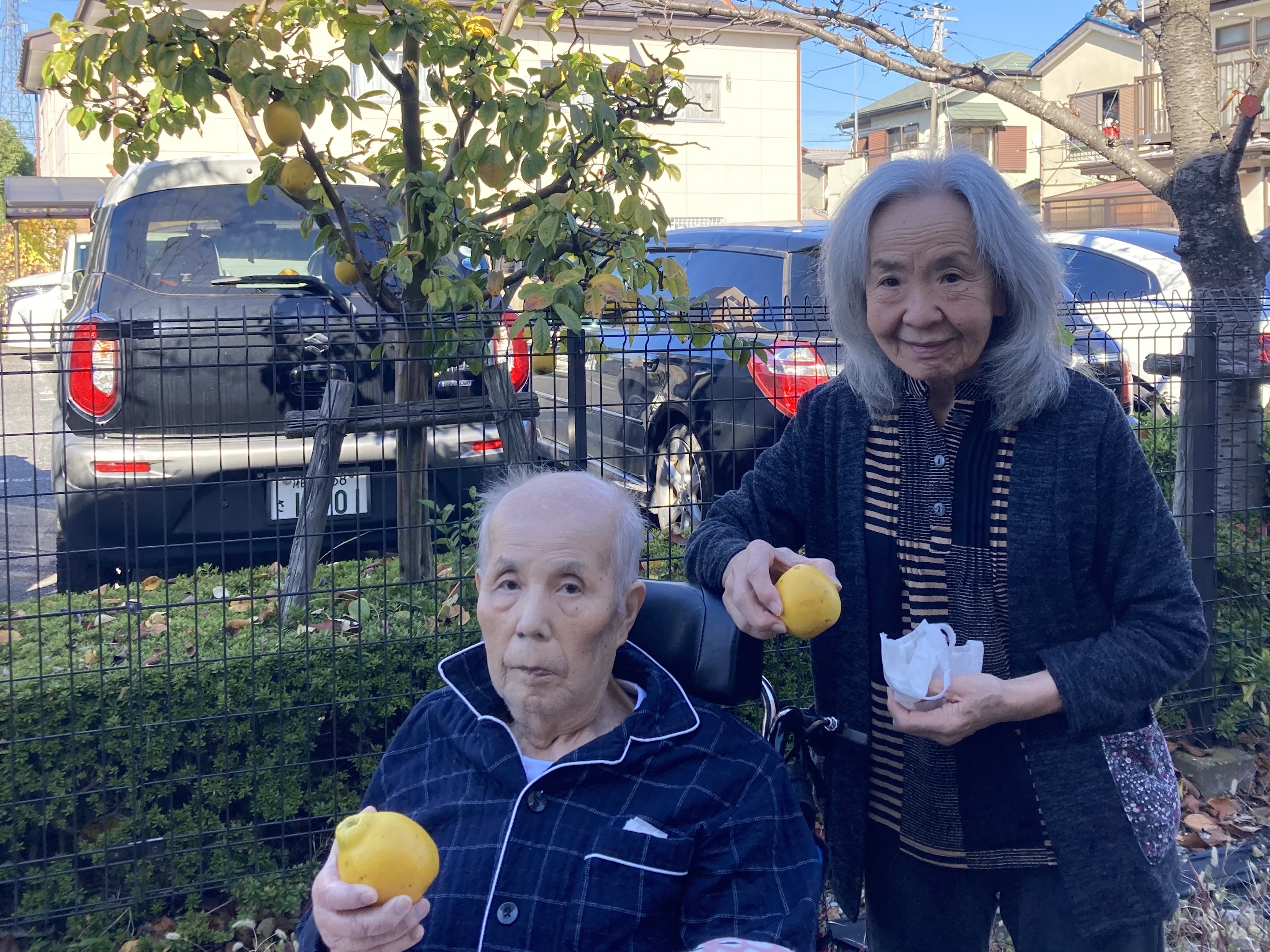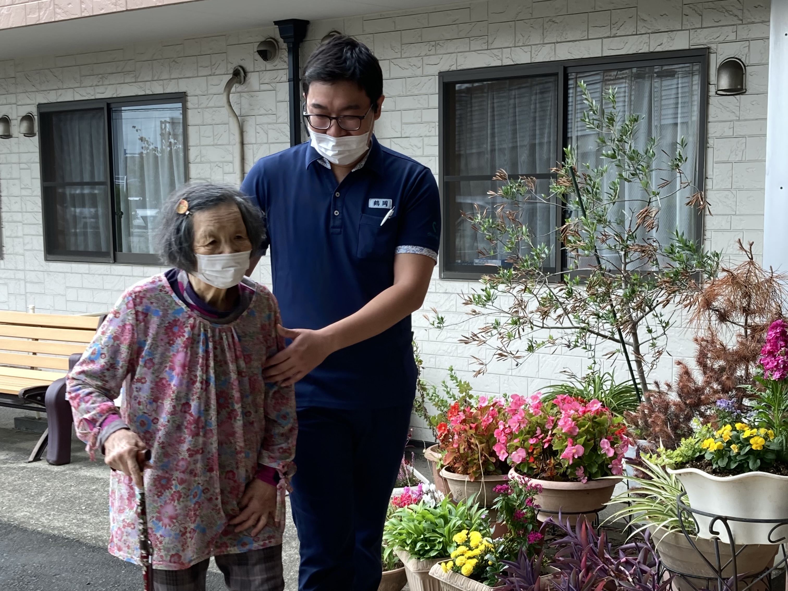 屋外歩行訓練では、転倒防止に備えてこんな風に腕を組むこともあります。2人とも、とっても嬉しそうですね(^-^)