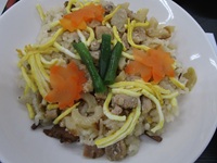 「大山おこわ」とは、大山山麓の食材を使用した醤油味のおこわで、西部地域の郷土料理です